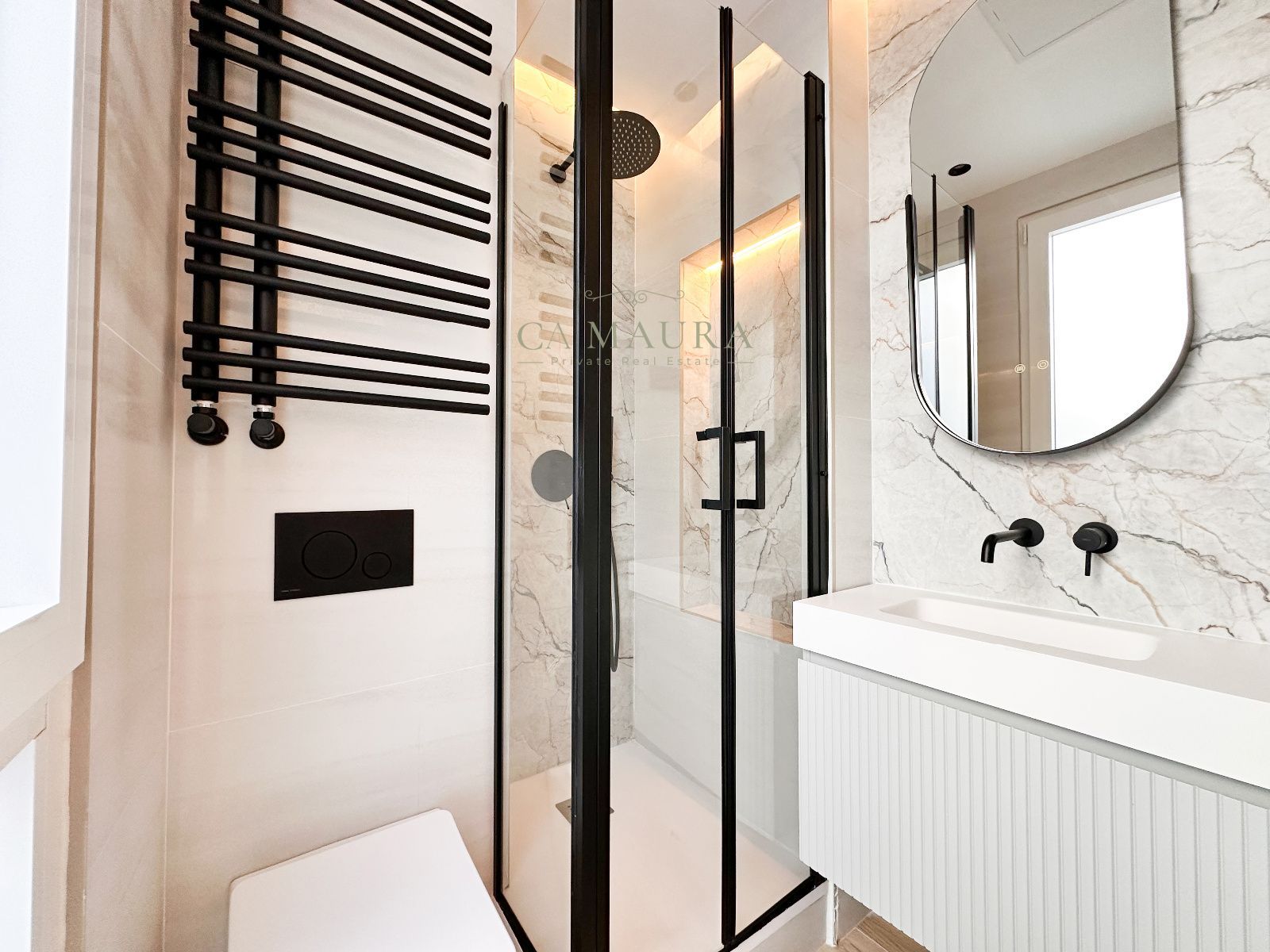 La vivienda destaca por la calidad de sus materiales y una cuidada selección de acabados que aportan elegancia y calidez a los espacios. Los suelos porcelánicos efecto madera y la altura de los techos refuerzan la sensación de amplitud, mientras que las ventanas de altas prestaciones garantizan un excelente aislamiento térmico y acústico. La cocina cuenta con mobiliario a medida y electrodomésticos integrados, combinando diseño y funcionalidad, y los baños presentan una estética contemporánea con materiales seleccionados y acabados de calidad. La vivienda dispone además de aire acondicionado con sistema "Airzone" y calefacción individual, garantizando confort durante todo el año.
