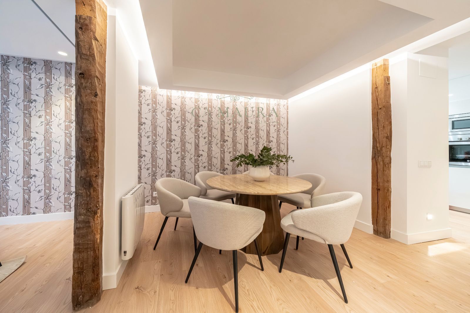 Ca Maura selecciona y presenta al mercado esta vivienda exterior situada en una tercera planta de una finca clásica de 1.900 con ascensor (próximamente en instalación), ubicada en el distrito centro, dentro del barrio de Justicia/Chueca, una de las zonas más codiciadas de Madrid. Con orientación Este, disfruta de una excelente entrada de luz natural a lo largo del día, generando una atmósfera cálida y acogedora en todas las estancias. La propiedad se encuentra recién reformada y lista para entrar a vivir, combinando el carácter de la arquitectura clásica con un diseño interior contemporáneo pensado para el confort y la vida urbana.