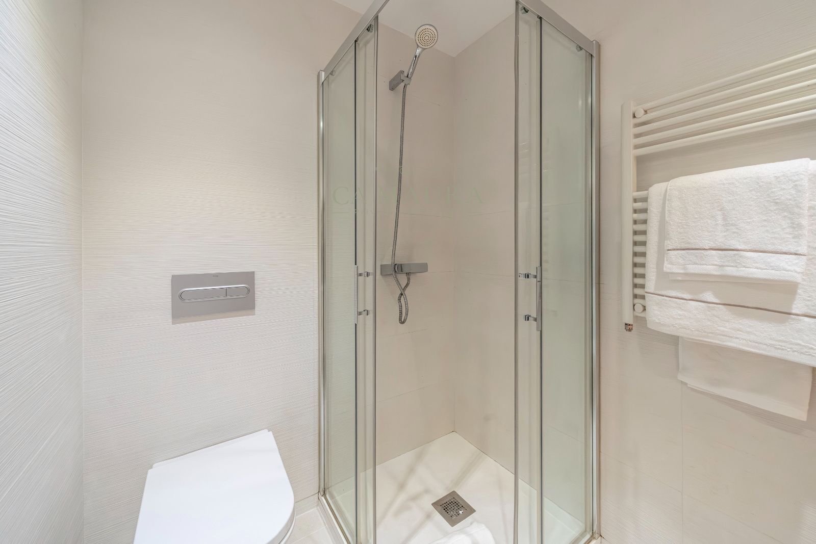 La vivienda destaca por la calidad de sus materiales y una cuidada selección de acabados que aportan elegancia y calidez a los espacios. Los suelos de madera y la altura de los techos refuerzan la sensación de amplitud, mientras que las ventanas de altas prestaciones garantizan un excelente aislamiento térmico y acústico. La cocina cuenta con mobiliario a medida y electrodomésticos integrados, combinando diseño y funcionalidad, y los baños presentan una estética contemporánea con materiales seleccionados y acabados de calidad. La vivienda dispone además de aire acondicionado mediante splits y calefacción individual eléctrica, garantizando confort durante todo el año.